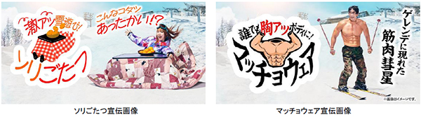 また、今シーズンは「ソリごたつ」以外にも「アツい」をテーマにした様々なイベントを開催しております。メインゲレンデでは着れば誰でもマッチョになれる筋肉型のウェア「マッチョウェア」やスタッフが60周年の感謝を込めたアツいメッセージをプリントした「パッションビブス」の着用、レストラン「アルペンローゼ」にて実施している様々な鍋メニューを堪能できる「アツアツ鍋フェア」といったイベントも好評開催中です。