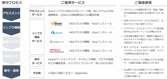 当社では、移行計画の策定、移行先インフラの構築、インストレーション、移行作業の実施、移行後の運用保守、アナリティクス組織の立ち上げなど、必要に応じて様々な形態でご支援するサービスを開始いたします。