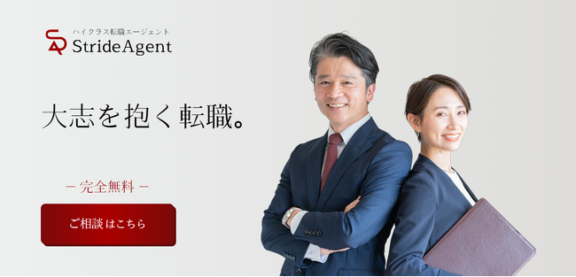 ストライドエージェントは、ハイクラス層の転職をサポートする専門エージェントです。各業界に精通した転職エージェントが、あなたの転職活動をフルサポートします。