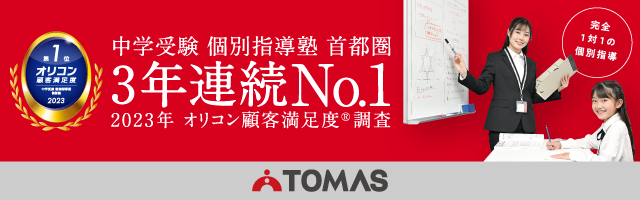 進学個別指導塾「TOMAS」が2023年 オリコン顧客満足度(R)調査の中学受験 個別指導塾 首都圏ランキング(以下「本ランキング」)において全8つの項目※で評価された結果、総合1位を獲得いたしました。本ランキングにおいて総合1位を獲得するのは2021年以降3年連続となります。引き続き皆様に満足していただける“本物の教育サービス”を提供できるよう全力で努めてまいります。