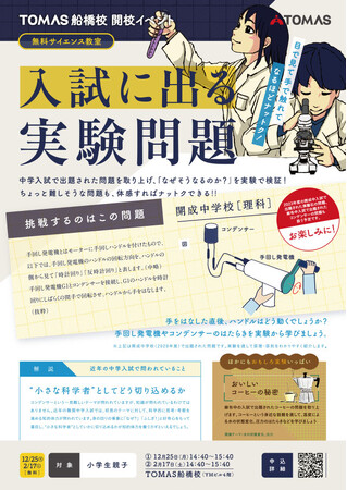 難関中学入試で出題された問題を実験で検証する人気イベント!難関中学入試で求められる科学的関心・思考・態度を、体感を通して楽しく学ぶ育むイベントです。受験生以外のお子さんもぜひご参加ください。