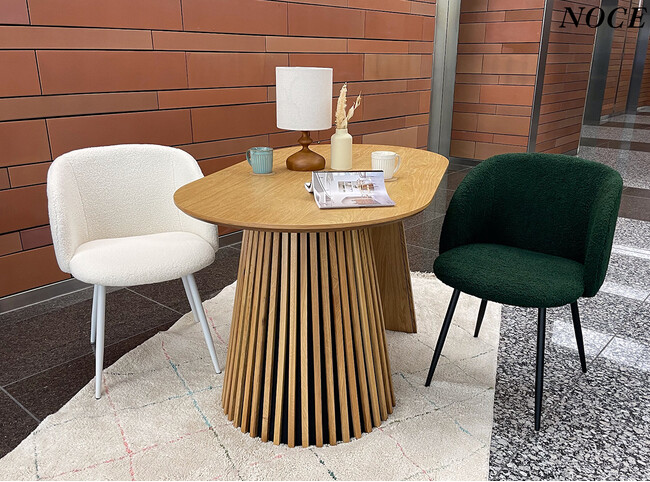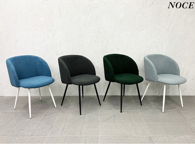 トレンドのモコモコとした質感がかわいいファブリックを使用したチェアSDC009。その包まれるような座り心地は日々の暮らしに癒しのひと時を与えます。全6色展開で、かわいらしさだけでなく、上品さもお選びいただける、NOCEの新商品チェアです。