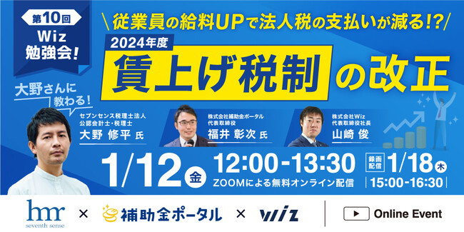 1/12(金)【第10回Wiz勉強会!】大野さんに教わる!<2024年度>賃上げ税制の改正 ~従業員の給料UPで法人税の支払い減らせる!?
