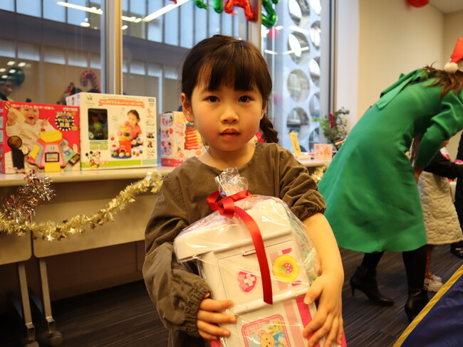 当日は、0才から4才までの子どもたちが参加。用意したクリスマスプレゼントを見るとそれぞれ喜んだ表情を浮かべ、楽しそうにプレゼントを選ぶ姿が見られました。おままごとアイテムを選んだ3才の女の子は、継承されたプレゼントに対して『とてもうれしいです!家に帰ってはやく遊びたい!』と嬉しそうに話してくれました。 おもちゃをもらったお子さんのママは、『おもちゃ屋さんでは手に取らないおもちゃを選んでいて、新たな興味を示してくれることができて母としてもうれしい。』とコメント。また、おもちゃを提供したお子さんのママは、『手放すことに躊躇して家に眠ってましたが、社員の子どもたちだったらと、前向きに継承できました。子どもがおもちゃを手放すことも学べるいい機会になりました。』と話し、継承クリスマスイベントに対して大満足の様子でした。