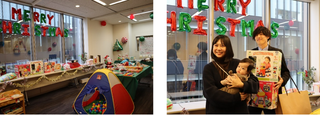 そこで今回は、子どもから子どもへクリスマスプレゼントとしておもちゃを譲渡する「継承クリスマス」イベントを開催しました。SDGsの廃棄物削減の観点から、『捨てるにはもったいないが、もう家にあっても使わなくなってしまったおもちゃ』をリユースし、お子さんの大切なおもちゃとの出会い・別れを経験するイベントとして実施。当日は、参加したお子さんはもちろん、ママ・パパ社員も大喜び!『継承クリスマス』イベントを楽しんでいた様子でした。