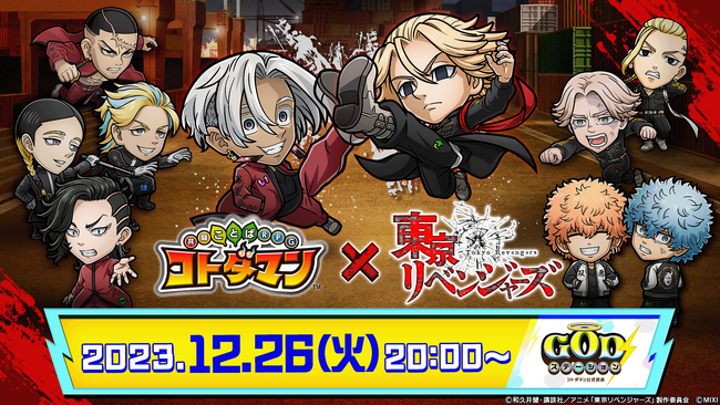 株式会社MIXI(東京都渋谷区、代表取締役社長 上級執行役員 CEO:木村 弘毅)は、スマホアプリの「ことば」で闘う新感覚RPG「共闘ことばRPG コトダマン」(以下コトダマン)において、TVアニメ『東京リベンジャーズ』とのコラボ第3弾を、本年12月27日(水)より開催します。