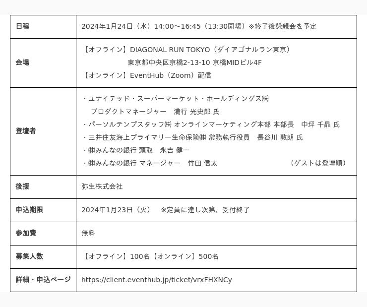 株式会社みんなの銀行(取締役頭取 永吉 健一、以下「みんなの銀行」)は、2024年1月24日、BaaS(Banking as a service)活用によるDX戦略および顧客体験の向上をテーマに「”みんなのBaaS”セミナー」を開催します。