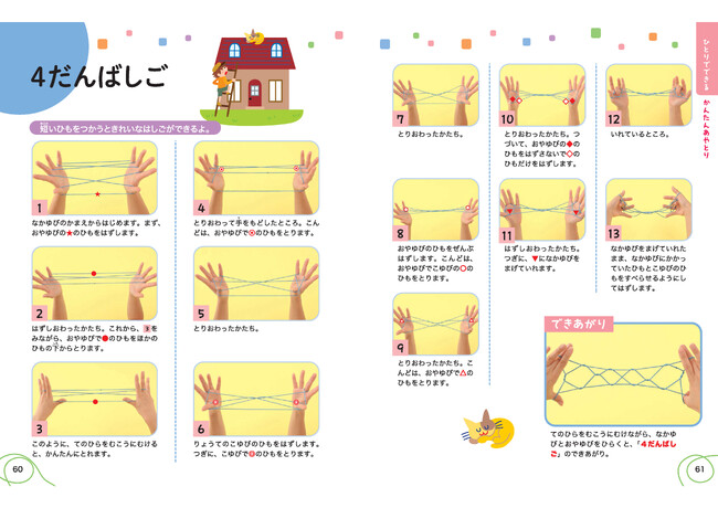 2004年11月に発行された『やさしいあやとり』は、重版数24回、累計発行部数10万部の超ロングセラーです。あやとりを始める子どもから、あやとりをもう1度楽しみたい大人まで愛され続けて、発行から年を重ねること19年超。この度、待望のリニューアルとなりました。