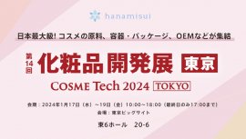 株式会社ハナミスイ(本社:東京都新宿区、代表取締役:方 智煥/以下、ハナミスイ )は、2024年1月17日(水)~19日(金)に東京ビッグサイトで開催される第14回COSME Week東京の「第14回化粧品開発展」に初めて出展いたします。
