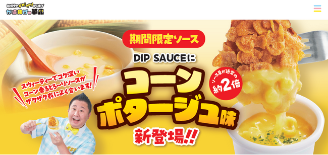 フォーリンデブはっしー監修デリバリー専門店「から揚げの革命」冬の新作「コーンポタージュ味」新登場!