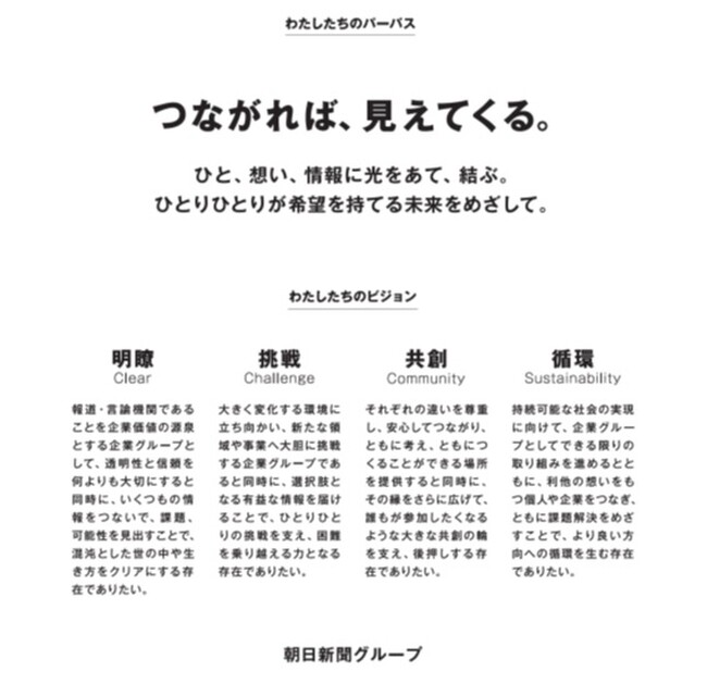 朝日新聞社コーポレートサイトのパーパス・ビジョンのページ