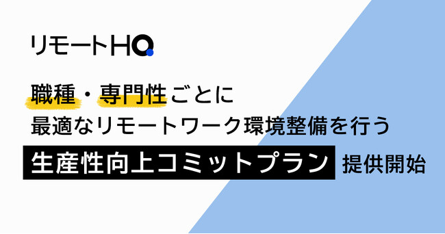 『リモートHQ』、職種・専門性ごとに最適なリモートワーク環境整備を行う「生産性向上コミットプラン」を提供開始
