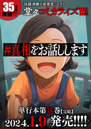 シリーズ累計35万部を突破し、2巻発売時には、Amazon売れ筋ランキングKindle青年マンガ部門で1位を獲得した感覚ミステリ『#真相をお話しします』のコミカライズ版、完結巻である第3巻が2024年1月9日(火)、バンチコミックスより刊行されます。