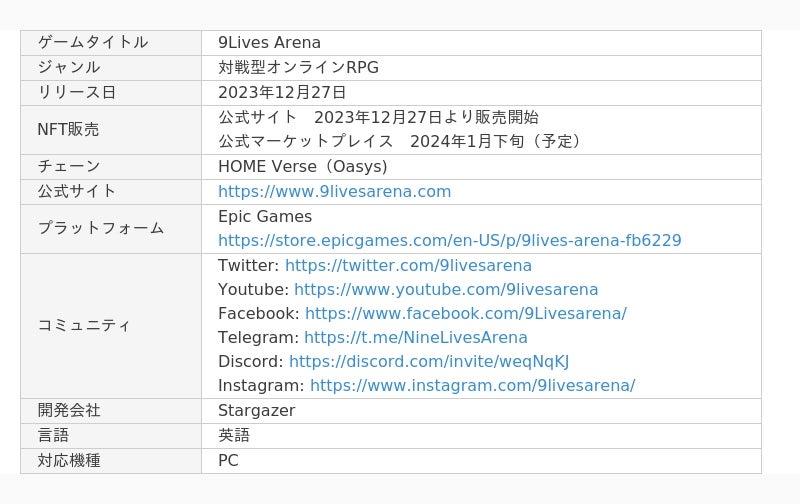 対戦型オンラインRPG『9Lives Arena』が2023年12月27日に、ゲーム特化型ブロックチェーンOasysのL2であるHOME Verseにてサービスを開始いたしました。