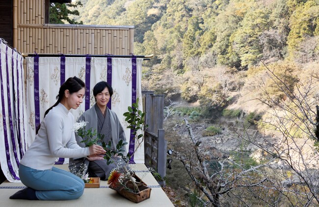 ~平安時代の寝殿造りを彷彿とさせる空中茶室で行う、自然の中での華道体験~