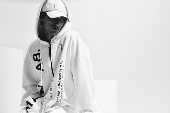 新しいメン ラブ コレクションのデザイン全体には、新しい視点が鮮明に表れています。シャープなカット、大胆なグラフィック、そしてブラックとホワイトという必要最低限まで絞り込まれたカラーパレットでミニマルなスピリットが反映されています。色が凝縮される一方でマット、反射、触覚的な生地が絶妙なバランスで調和し、質感が際立っています。バルマンの歴史ある繊細なパリのテーラリングは、ジャージーとフリースを使ったリラックスしたスポーツウェアのフィット感と見事に調和しています。ユニコーンにインスパイアされたコレクションらしく、新しく目を引くオールブラックとブラックアンドホワイトのバリエーションも取り揃えています。