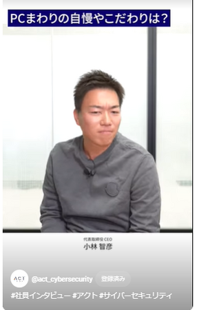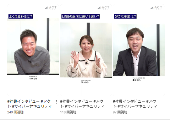 ITトータルソリューション、サイバーセキュリティ事業などを行う株式会社アクト(本社:東京都文京区、代表取締役CEO 小林 智彦 、以下 アクト)は、自社制作の動画コンテンツを公式YouTubeチャンネル「株式会社アクトチャンネル」に毎日配信しています。IT企業は、常に新しい技術やトレンドを取り入れ、変化し続けています。そんなIT企業で働く社員は、どんなことを考えているのでしょうか?そこで、IT企業で働く社員に、あらゆるおもしろ質問をしてみました。2024年1月9日からインタビュー動画をYouTubeショートで配信しています。