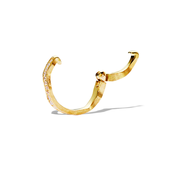 定番のKINTSUGIパヴェヴァインリングをイヤーカフとしてリデザイン。程よい円形サイズで耳元に立体感をプラスし、他のイヤーカフやお手持ちのイヤリングとも合わせやすく、スタイリングは無限大。天然ダイヤモンドが上品な輝きを放ち、耳元を美しく引き立てます。