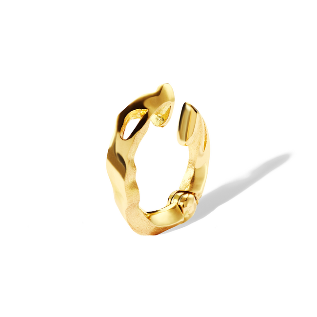 金継ぎの繊細なディティールが18金で施されています。耳をしっかりと包み込みながらも、圧迫感や不快感を最小限に抑えたこのメカニズムは、日本の職人による画期的な発明です。