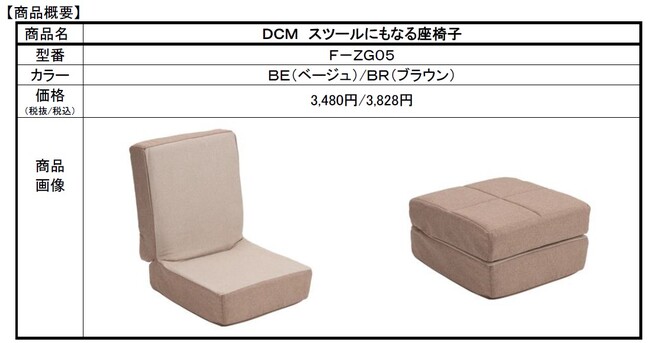 コンパクトなスツールにも座椅子にもなる機能性を兼ね備えた 「DCM スツールにも なる座椅子」を新発売