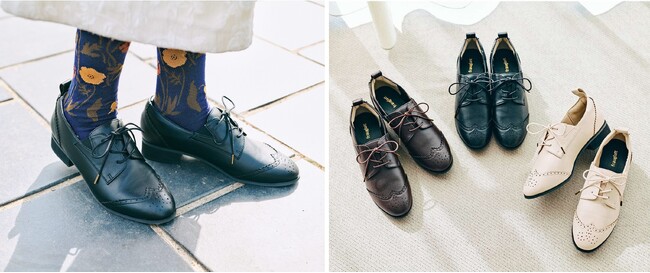 本革のようなきちんと感がありながら、スニーカーのような履き心地です。5つ星の機能で快適さを実現した上品に華やぐウィングチップデザインが特徴です。脱ぎ履きが簡単で、インソールはふんわり。厚手の靴下や甲高幅広さんも履きやすい4Eサイズですが、きれいなノーズシルエットですっきりきまります。