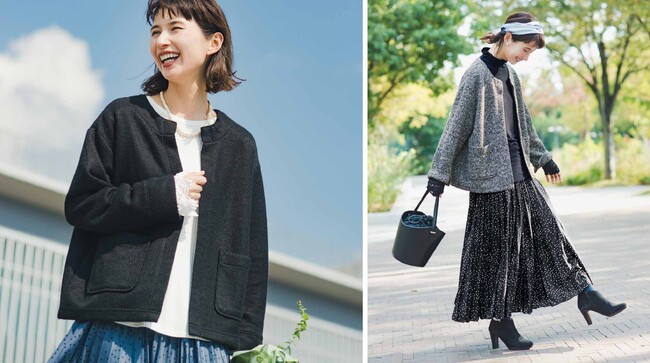 「ジャケット風カーディガン」や「ツイード調大人着映えトップス」など特別な日にもふだんにも役立つファッションアイテムがフェリシモ「frauglatt[フラウグラット]」から新登場