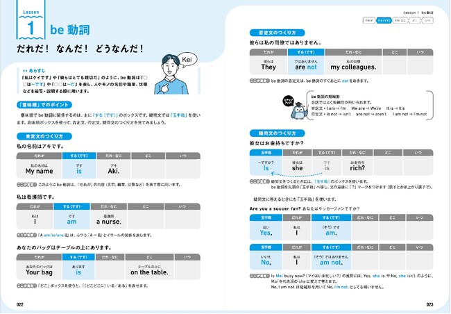 be 動詞/一般動詞 /疑問詞1.(Who, What, Which ほか)/疑問詞2.(When, Where, How ほか) /現在進行形 /命令文 /感嘆文 /be 動詞の過去形 /一般動詞の過去形 /There is の文