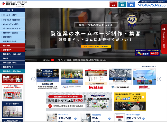 デジタルベリーは、製造業向けホームページ・デジタルカタログ・印刷物制作などを提供する「製造業ドットコム」を運営し、製造業の製品・技術のPRや集客を支援している企業です。これまで、中小製造業を中心に350社以上の制作実績があります。