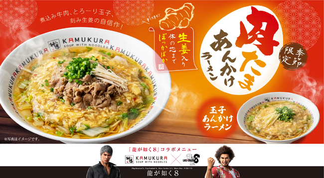 2024年1月26日(金)に発売される『龍が如く』シリーズの最新作『龍が如く8』とのコラボメニューで『肉たまあんかけラーメン』『玉子あんかけラーメン』を販売いたします。