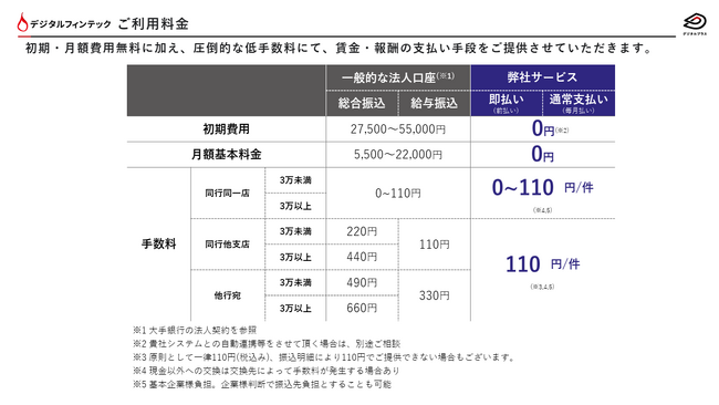 本サービスの提供に伴い、銀行振込手数料はゆうちょ銀行、全国の都市銀行、地方銀行含め、原則として一律110円(税込み、※3)での提供を行います。