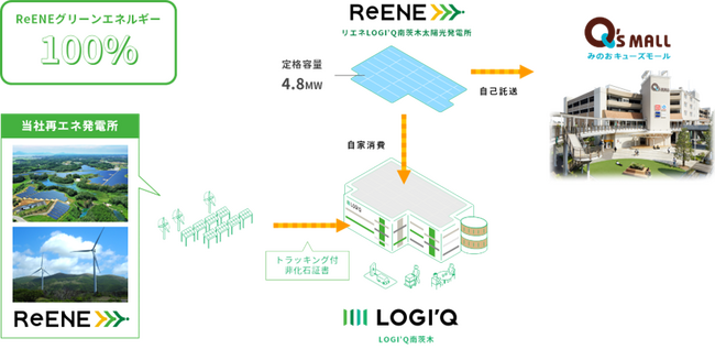 また本発電所で発電した電力は近隣の自社商業施設「みのおキューズモール」(所在地:大阪府箕面市)への自己託送※を予定しております。この自己託送スキームによる送電をするのは当社初となります。