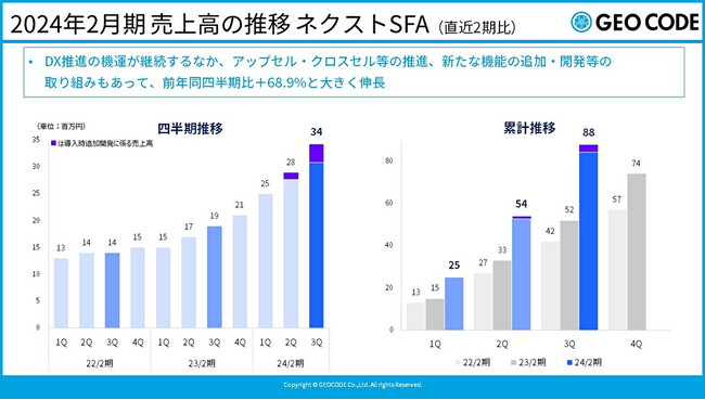 2024年2月期 第3四半期の決算を発表、ネクストSFAは前年同期比+68.9%、Web広告は同+18.1%と順調に推移