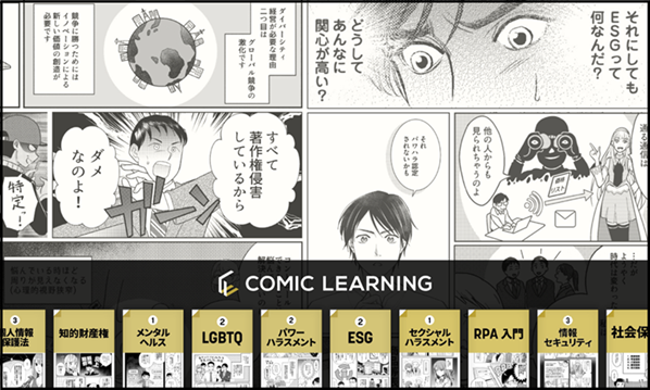2021年8月に提供を開始した『コミックラーニング』は、分かりやすさ・共感性を強みとするコミック教材を活用し、誰もが学びたくなる「心を動かす研修」を提供する研修サービスです。