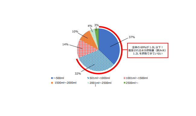 20代~50代の男女の69%以上が推奨される1日当たりの水分摂取量(1.2L)(※1)を摂取できていない!?