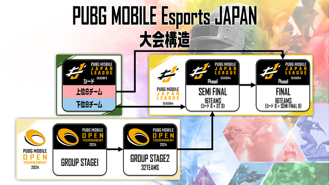 PUBG MOBILE JAPAN Esportsの情報は、『PUBG MOBILE』公式サイトまたはPUBG MOBILE JAPAN LEAGUE公式Xアカウント(https://twitter.com/PMJL_official)をご確認ください。