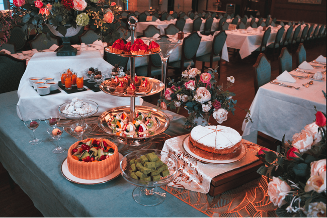 高い吹き抜け天井が特徴の重厚感のあるメインダイニングのリフェクトリーにて、旬の食材をふんだんに使用した本プラン限定スペシャルディナーをお楽しみいただけます。また、デザートに12種類のシェフ特製スイーツをお好きな種類、お好きな分だけお召し上がりいただけます。