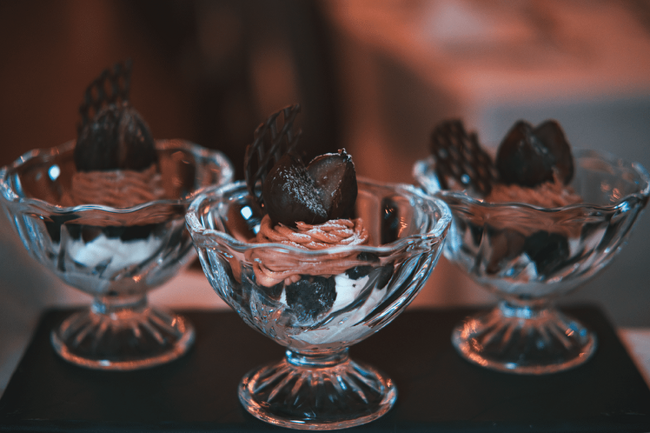 ▼ 可愛らしいミニサイズのモンブランパフェ。土台のクリームにはラ・フランスの隠し味。薫り高いラ・フランスとマロンクリームや生チョコとのハーモニーをお楽しみいただけます。