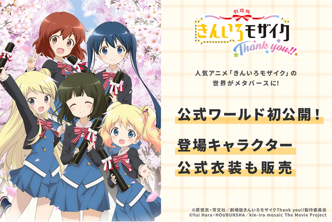 人気アニメ「きんいろモザイク」の世界がメタバースに!Vが、「きんいろモザイクThank you!!」公式ワールドを公開。登場キャラクターの公式衣装も同時販売!