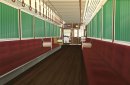 車内は大正時代の車両における標準的な仕様を再現。座席シートは赤色の布地を使用し、床は木目調のデザインを施しています。