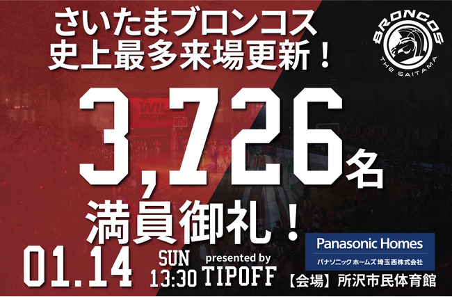さいたまブロンコス1/13(土).14(日)開催のホームゲームでクラブ史上最多入場者数更新!