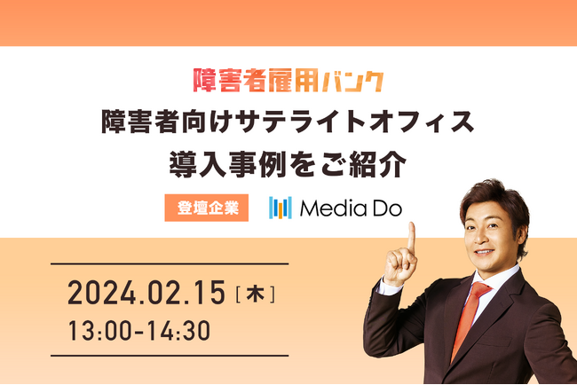 株式会社HANDICAP CLOUD(本社:東京都新宿区、代表取締役社長 兼 CEO:森木 恭平、以下HANDICAP CLOUD)が運営する障害者雇用バンクでは、障害者雇用担当者向けのウェビナーを毎月実施しています。2月はオフラインでのセミナーを2月15日(木)に開催します。株式会社メディアドゥの人事担当者をお招きし、サテライトオフィス導入事例をご紹介させていただきます。