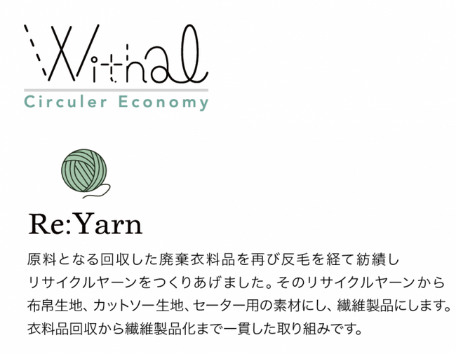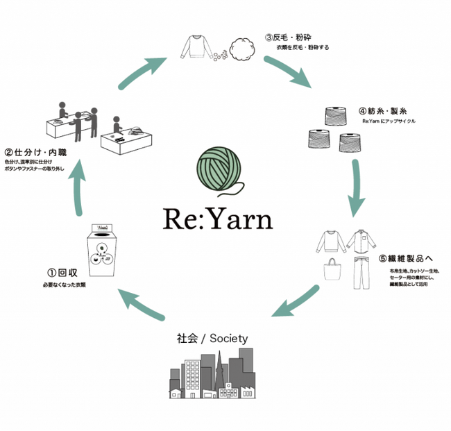 回収した衣類はリサイクルヤーンとなり、製品の素材として使うことができます。
