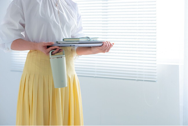 開閉がしやすく、密栓タイプのハンドルつきスクリューせんを採用することで、カバンに入れても漏れずに持ち運ぶことが可能に※3。オフィス内でのちょっとした移動やアウトドアなどの屋外での利用に便利です。