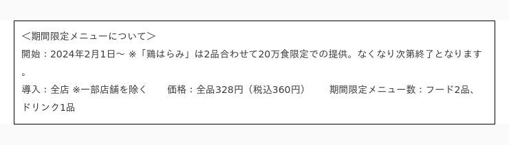 こだわりコンボ第一弾では、「鶏はらみ」を使用したオリジナル鉄板焼を20万食限定で販売いたします。