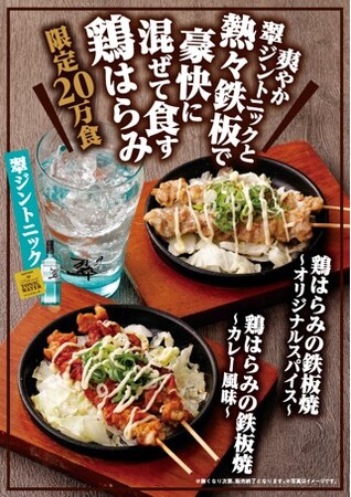 合わせておいしいおすすめのドリンクとして、すっきりと軽やかに楽しめるさわやかな味わいの翠を使用し、さっぱりと飲みやすく仕上げた「翠ジントニック」をご用意しました。「鶏はらみの鉄板焼~オリジナルスパイス~」・「鶏はらみの鉄板焼~カレー風味~」との相性も抜群です。