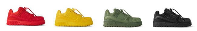 カーフレザーにアリゲーター・プリントを施した大胆な色合いが魅力の「LV トレイナー マキシ・ライン スニーカー」。本デザインのキーディテールは、オーバーサイズのフィット感と、カルト的人気を誇る「LVトレイナー・ライン スニーカー」を彷彿させるトーナルなラバーアウトソール。シュータンとサイド、背面にあしらったラバー製のLV イニシャルが個性を放ちます。