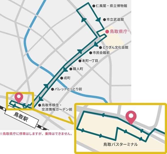 (鳥取バスターミナル~若桜街道~裁判所前~鳥取城跡周辺~鳥取県庁