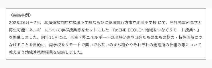 ReENE ECOLE」とは、東急不動産の再生可能エネルギー事業「ReENE(リエネ)」のブランド名と、フランス語で学校・学び舎“を指す「ECOLE」を組み合わせ、“地域や地球の環境を大切にする学びの場”という意味を込めた東急不動産の環境教育プログラムです。