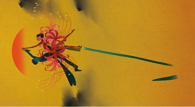 「その花が持つ背景や情緒的なイメージ、物語を伝えられるような絵」を目指した、こだわりのレイアウト。その中に描かれるのは、花の特徴や踊り子の、細かな表現。