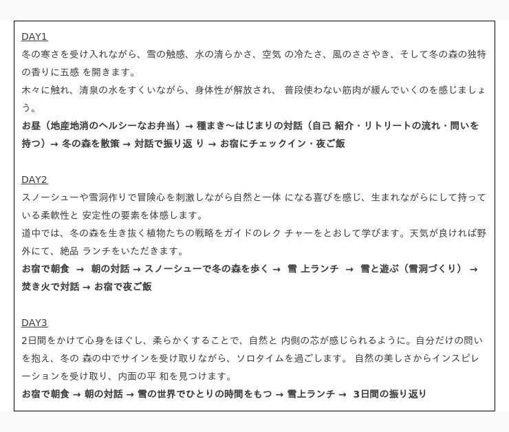 販売プランの一例2. みなかみ:羊飼いレオの雪山リトリート しなやかな自然とわたしに出会う旅